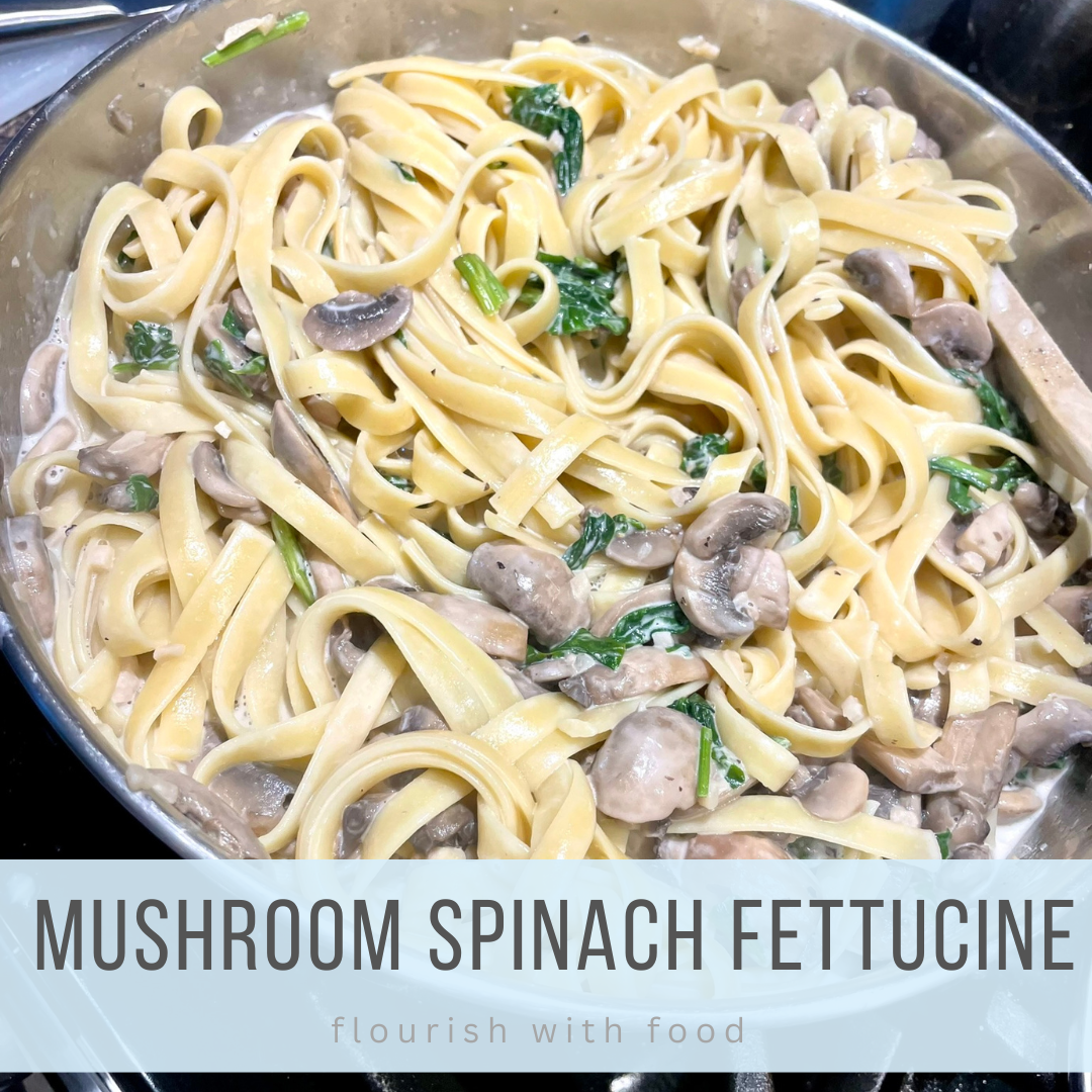 - Bring a large pot of water with salt to a boil. Cook the fettuccine pasta according to package instructions, until al dente. Reserve about 1/2 cup of pasta water before draining. Wash your mushrooms and spinach.